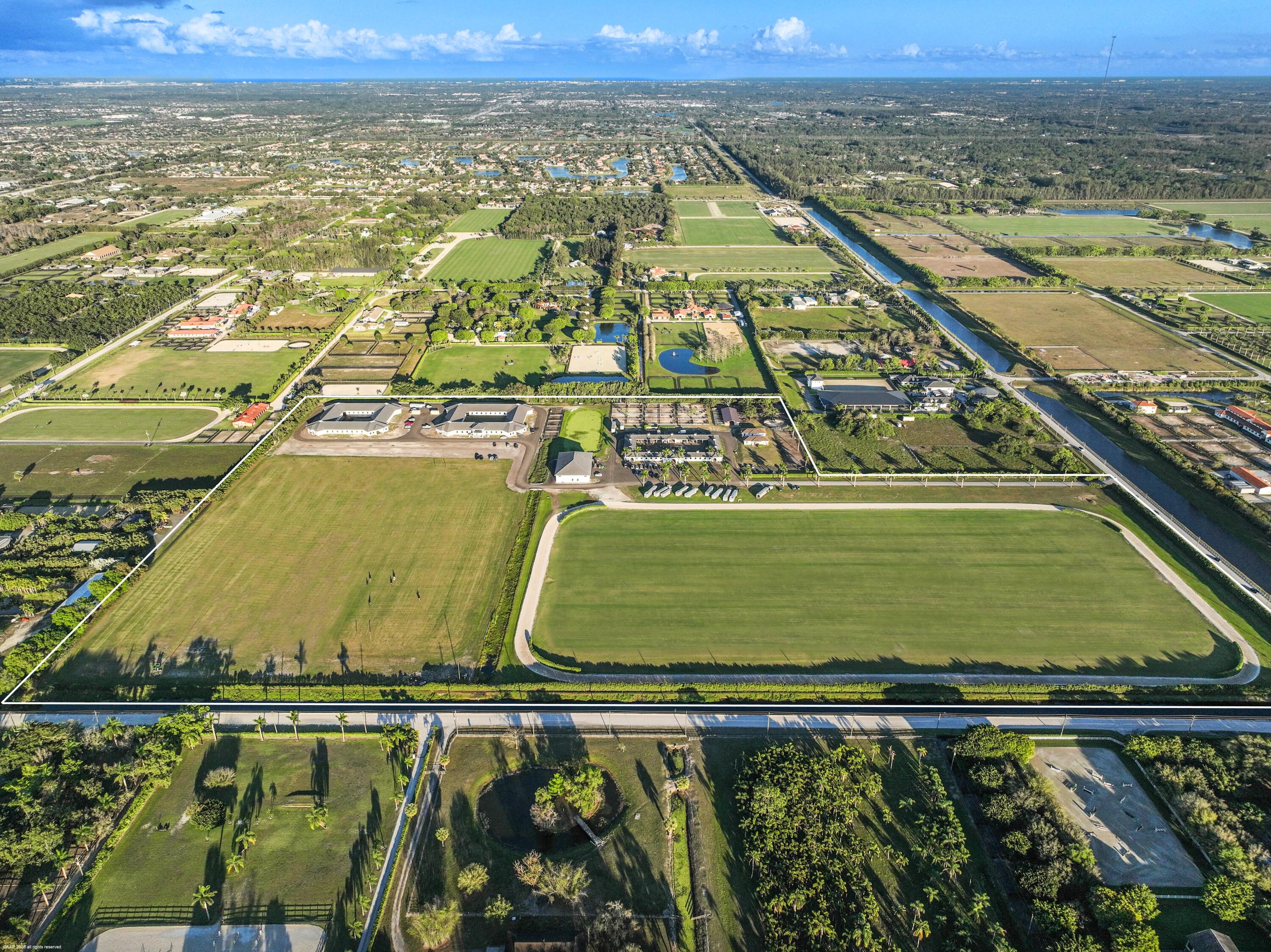 DescriptionReduced $7,500,000. One of a kind opportunity to own a 46.96 acre equestrian facility in a prime Wellington location on a paved road and with no homeowner's association. The property boasts 4 stables, totaling175 stalls, full size polo field with exercise track, a second stick & ball practice field, maintenance garage and two staff houses. Two new show barns were built in 2024, one with 52 stalls & the other with 59, it also features a 2nd floor viewing room with balcony overlooking the polo fields. The original courtyard barn holds 48 horses and the over flow barn has 16 stalls. The staff houses each have 4BR & 4Bths. The property is comprised of multiple parcels which could lend itself to future subdivision. This farm has unlimited potential for all equestrian disciplines. A must see!