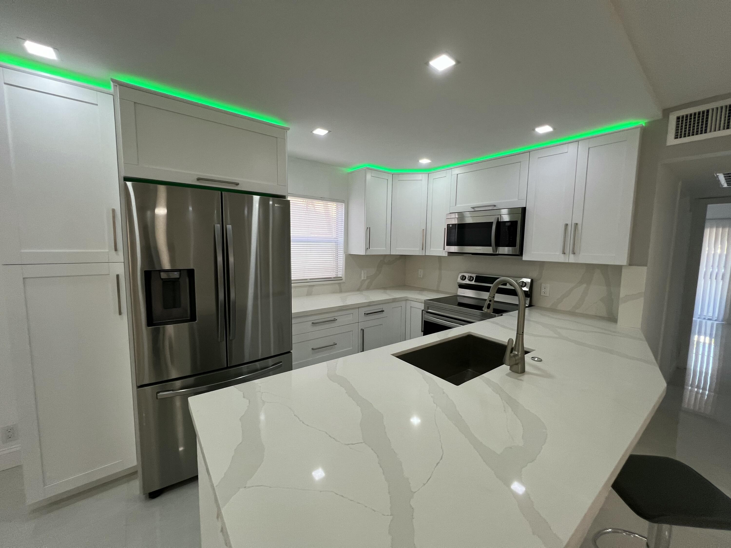 DescriptionSTUNNING UNIT! This beautiful 2 bedroom apartment is located in the heart of Kings Point; steps to the clubhouse, restaurant, and tennis and pickle ball courts, and pool!!! The apartment features two spacious bedrooms, each with plenty of natural light and ample closet space. The living room is bright and airy, with a large window. Kitchen boasts BRAND NEW appliances and beautiful white cabinetry, plus quartz countertops and backsplash. Added pantry cabinet. No detail was overlooked in this beautiful remodel. Neutral color palette to suit any decor style desired. Includes washer and dryer; electrical panel; water heater. All ceramic oversized tiles throughout; and two tastefully renovated bathrooms with frameless glass shower enclosures.