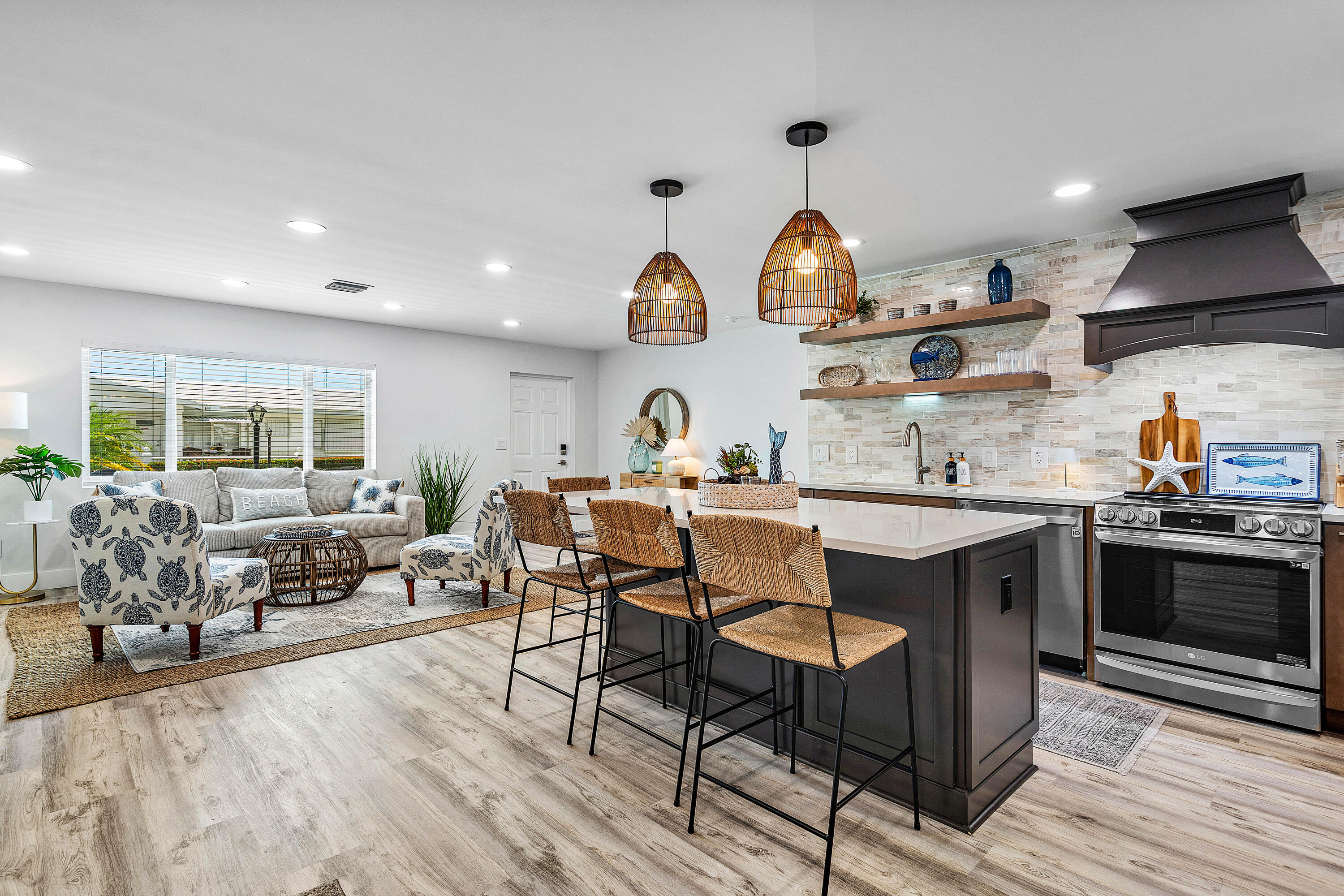 DescriptionTotally and professionally refurbished. Move in ready. 3 bedrooms and 2.5 baths. Many high end materials used. High quality flooring, cabinets and appliances. New A/C with halo air purification system, tankless water heater, new HVAC ducting, new lighting and electrical panel. Impact windows and doors This has to be seen to be appreciated. A third bedroom and 1/2 bath were added, and totally redesigned floor plan makes this a true open concept home.