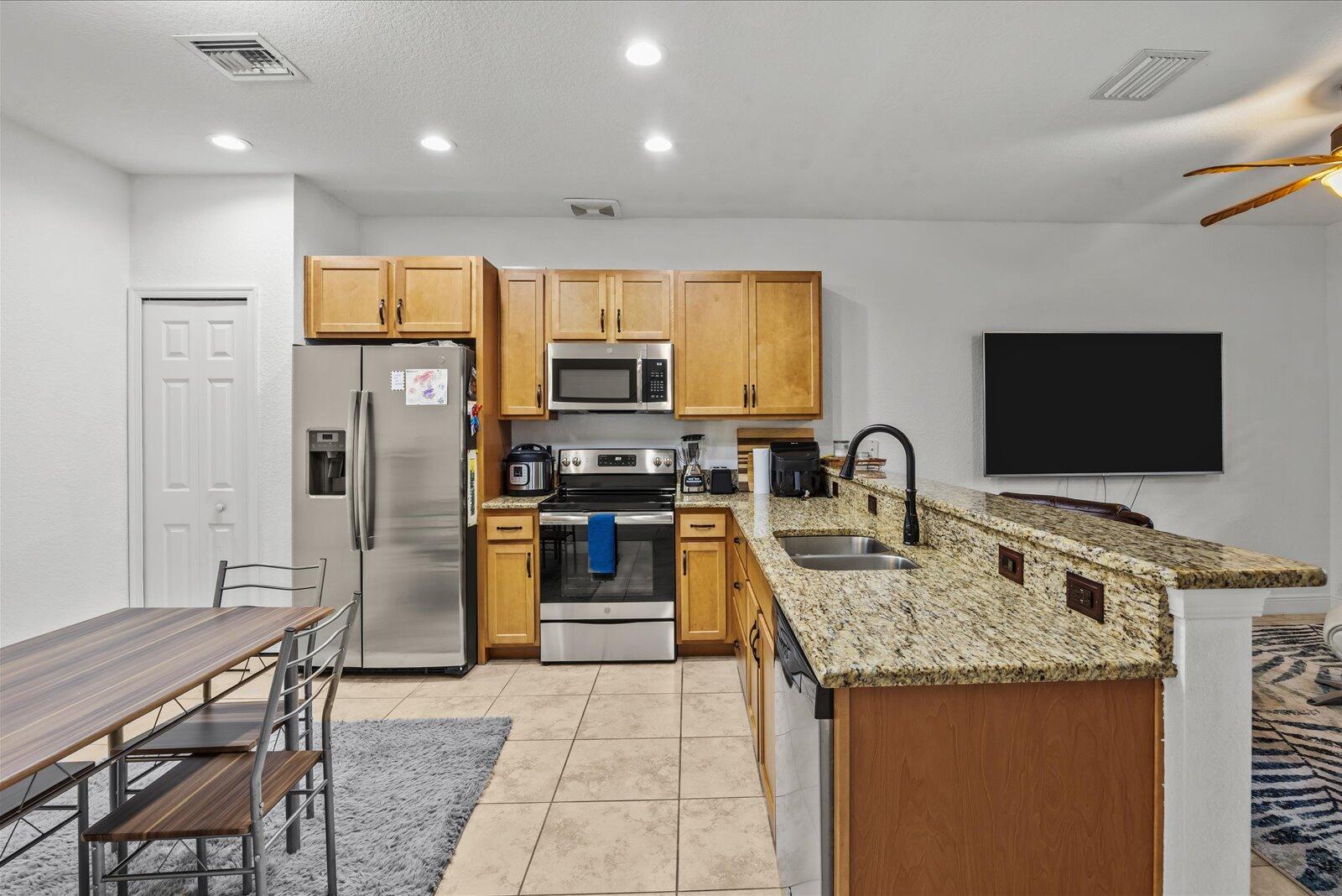 - Appliances: Electric Water Heater, Dishwasher, Dryer, Electric Range, Free-Standing Freezer, Ice Maker, Microwave, Refrigerator, Washer, Water Heater