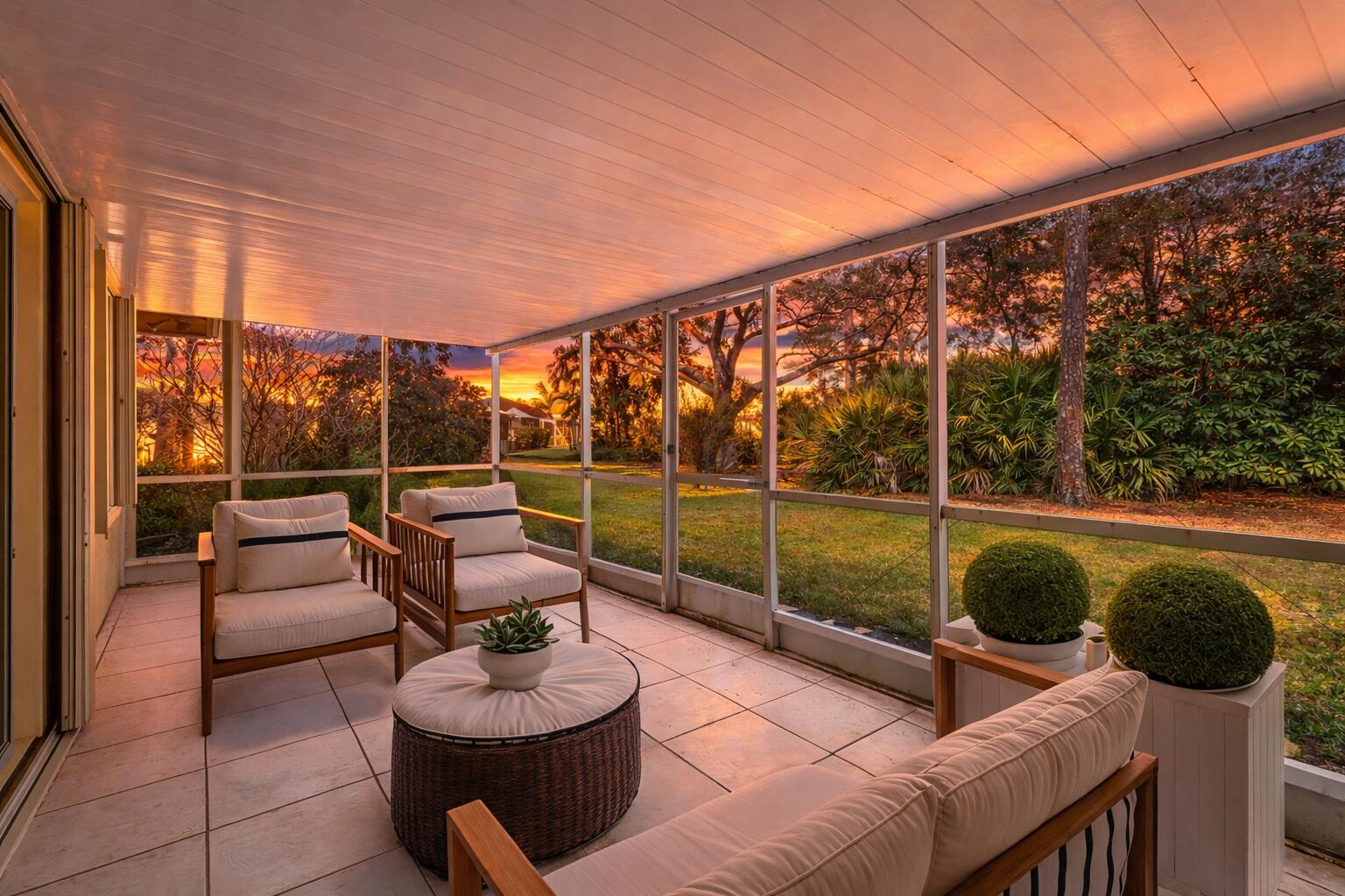 DescriptionEnjoy low maintenance living in the gated 55+ community of Whispering Sound. This well maintained 2 bedroom, 2 bath home offers a bright, open layout with high ceilings and a split bedroom floor plan for added privacy. The spacious primary suite features dual closets and a large en suite bath with soaking tub and separate shower. Unwind on the screened in patio just steps from the clubhouse, pool, spa, and fitness center. HOA includes roof, exterior maintenance, landscaping, cable, internet, and more all just minutes from downtown Stuart, boating, shopping, dining, and medical facilities.